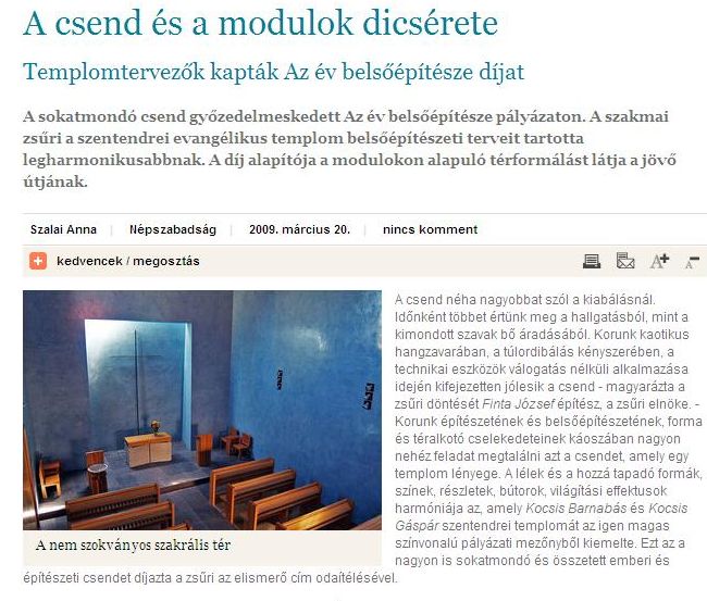A csend és a modulok dicsérete – Templomtervezők kapták Az év belsőépítésze díjat